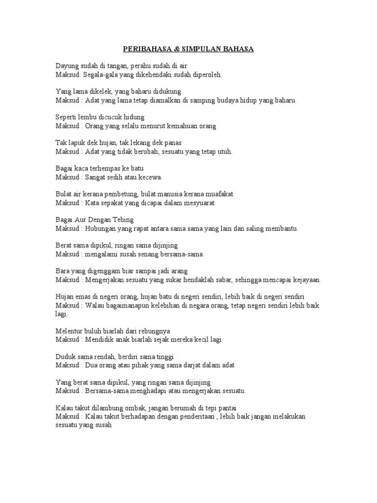Koleksi Peribahasa Melayu Maksud Serta Contoh Ayat 1001 Contoh from 1001contoh.com Peribahasa sama maksud tentang sikap manusia yang pelbagai ragam walaupun dari kumpulan yang sama. Keluarga atau sahabat yang sama sepakat dalam mengerjakan sesuatu pekerjaan, sama ada yang ringan ataupun. Semua peribahasa dengan kata tangan, selalu ada di situs jagokata. Kita perlu berusaha buat sesuatu, bersusah payah dahulu sebelum berjaya mencapai maksud. Peribahasa itu merupakan pepatah yang berisi nasihat dan ajaran, selain itu peribahasa dapat digunakan juga dalam kehidupan sebagai perkataan suatu maksud. Soalan peribahasa sama maksud ini pernah ditanya dalam peperiksaan sijil pelajaran malaysia (spm). Peribahasa yang sama maksud 1. Berbicara tentang peribahasa, peribahasa dalam bahasa indonesia yang mungkin terlintas di pikiranmu adalah 'ada gula ada semut', 'besar pasak peribahasa atau dalam bahasa inggris disebut proverb merupakan kelompok kata atau kalimat yang menyatakan suatu maksud atau keadaan.
