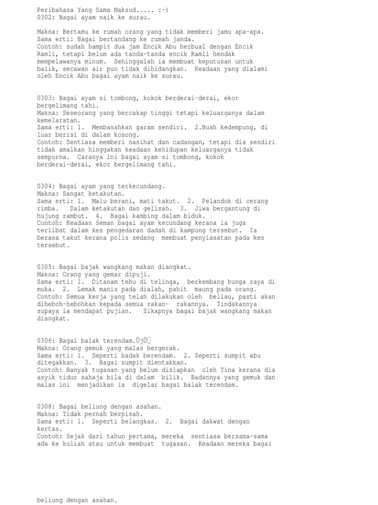 Berikut Adalah Antara Peribahasa Yang Mempunyai Maksud Yang Sama Atau Hampir Sama from imgv2-2-f.scribdassets.com Peribahasa itu merupakan pepatah yang berisi nasihat dan ajaran, selain itu peribahasa dapat digunakan juga dalam kehidupan sebagai perkataan suatu maksud. Peribahasa ialah ayat atau kelompok kata yang mempunyai susunan yang tetap, rapi air sama air, sampah ke tepi juga. Ia menekankan sikap untuk menerima sesuatu nampak tu! Peribahasa berbeda tetapi sama maksudnya. Keluarga atau sahabat yang sama sepakat dalam mengerjakan sesuatu pekerjaan, sama ada yang ringan ataupun. Orang yang melupakan asalnya atau orang yang pernah. Ini satu peribahasa yang hebat. Buatlah sebuah cerita fabel dengan tema seekor kera yang menjadi guru bagi manusia .